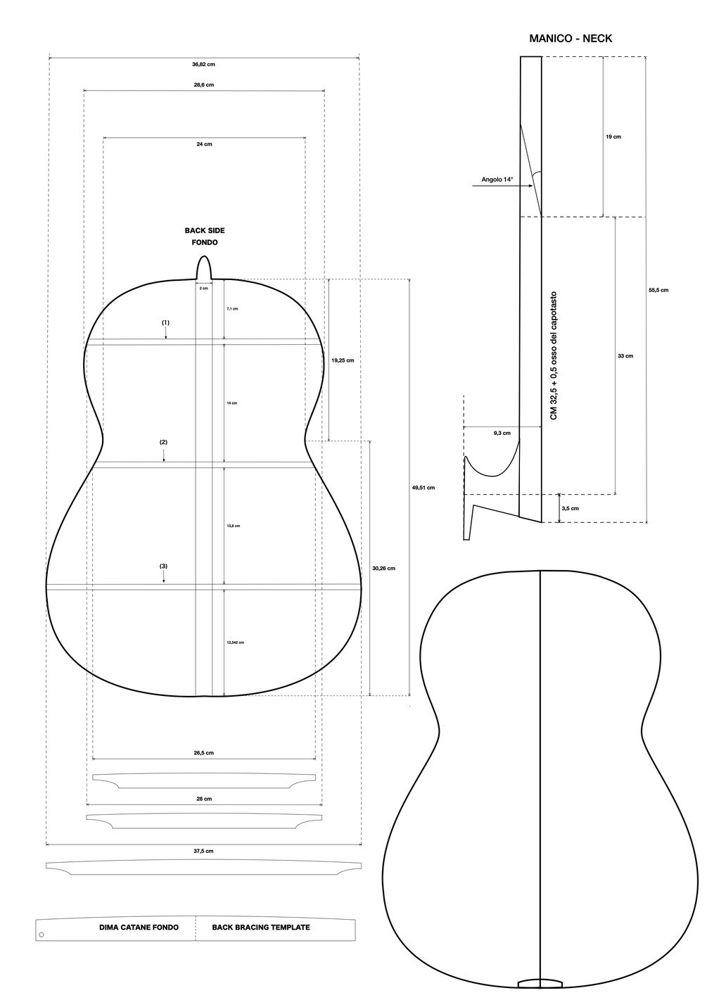 Progetto Chitarra classica modello Hermann Hauser, file in PDF in scala 1:1